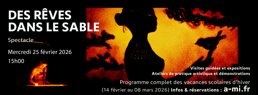 Spectacle poétique de dessin sur sable, atelier d’enluminure, impression en sérigraphie à partir des affiches de la Compagnie Bernard Baissait… découvrez une programmation originale et variée pour cette nouvelle période de vacances.